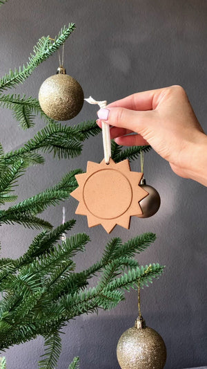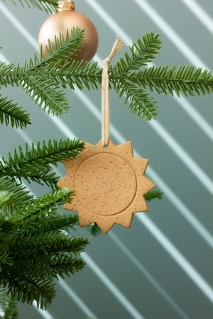 Do you miss the warmth of the sun in the short days of winter? Add a bit of light to your Christmas tree with our desert-inspired speckled sun ornament. The sunrays will bring an earthy warmth to your holiday festivities.