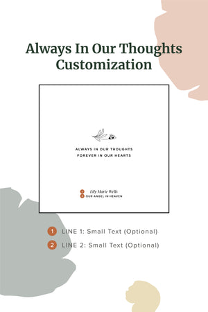 Express your condolences with a one-of-a-kind gift meant to store your loving memories. A designated memorial box can be a comfort to honor those always in our thoughts and forever in our hearts. Personalize this keepsake with your preferred phrase, date, place, or other details to celebrate the life you shared.