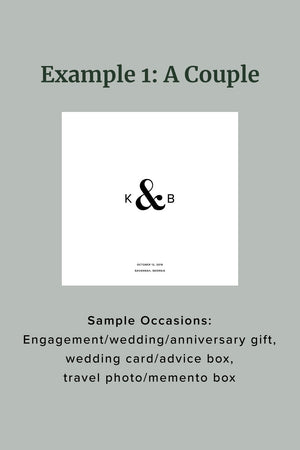 Celebrate your love with the bold simplicity of the Classic Initials personalizable keepsake box. The beautiful minimalism of this design is a timeless way to display your most special memories. Customize this piece with initials, as well as a special date or location to celebrate your wedding or other milestones such as an anniversary celebration.