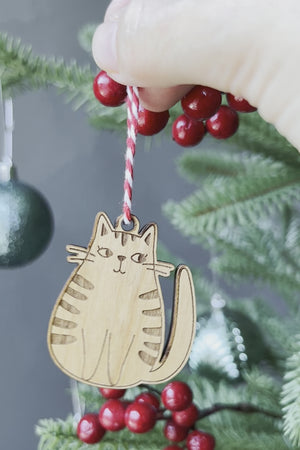 This mini wooden tabby cat ornament captures the essence of these beloved striped kitties. With its realistic markings and playful smile, it's a must-have for cat lovers and tabby enthusiasts. Hang it on your tree or display it somewhere special to bring the spirit of these charming cats into your holiday home.
