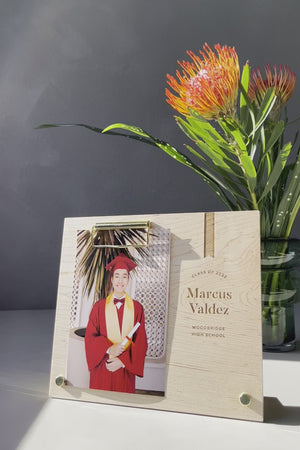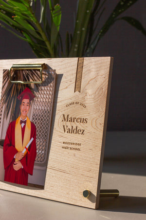 Show your graduate just how proud of them you are with a personalized frame celebrating their big accomplishment. Customize this table top photo display with their name, graduation date, and alma mater for keepsake that will last for many years to come.