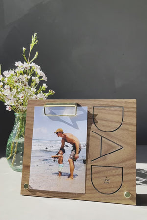 The clean lines and bold typography of this walnut keepsake photo frame is a stylish way to tell your Dad how much he is loved. Customize it with a personal message, name, or date for a unique way to express your love. Add a picture of a favorite memory to remind him of all the great experiences you’ve shared together, making it an unforgettable gift for Father’s Day or any day you want to send Dad a bit of love.