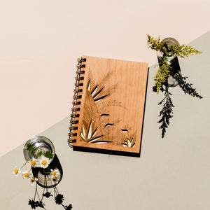 The stunning shape of the Birds of Paradise flower is even more delightful when they are on the cover of your journal. Hide your notes, thoughts, and to-dos under the beautiful foliage of the laser etched wood cover.