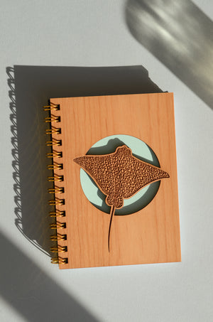 Stingrays glide effortlessly through the water, embodying both grace and mystery. We were inspired to capture their fluid movement and serene presence in the design of this beautiful wooden journal. Embrace the elegance and mystery of the stingray with every page you fill, and let this journal guide you on a journey of discovery and inspiration.