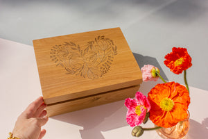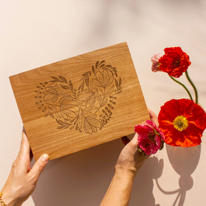 This beautifully engraved box is the perfect symbol of your love, and the perfect place to store your most precious items. The floral and natural elements intertwined with the heart design symbolize ever-growing love. An excellent gift for all occasions, and any of your loved ones.