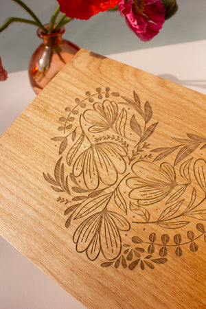 Each keepsake box is carefully constructed with certified sustainable alder wood and features hidden hinges so that the lid opens seamlessly to 90 degrees. We laser cut each keepsake box one at a time in our sunny Los Angeles studio to ensure the beauty of the design lasts a lifetime. This makes a thoughtful gift for the ones you love or for an extra special place to keep your prized mementos.