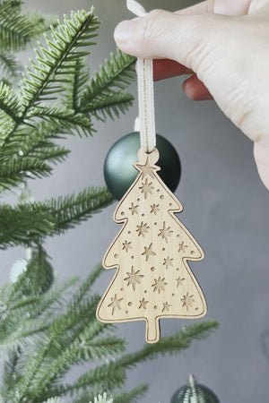Embrace the magic of the season with our sparkling Christmas tree ornament. Handcrafted with love and adorned with shimmering accents, this wooden treasure captures the joy and splendor of the holidays. Hang it proudly on your tree as a focal point that embodies the spirit of Christmas.