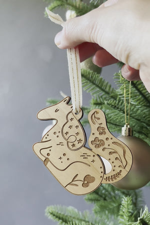 Gallop into the season with our dreamy horse wood ornament. Crafted with care and attention to detail, this whimsical masterpiece showcases the beauty and strength of these magnificent creatures. Its flowing tail and detailed pattern will captivate the imagination and add a touch of equestrian elegance to your holiday display.