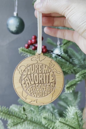 Show your loved ones just how much they mean to you with this adorable wooden ornament featuring a globe design and a playful saying. It's the perfect way to express your affection and remind someone that they hold the most special place in your heart.