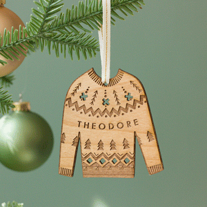 Everyone has a friend or family member who celebrates the holiday season by bundling up in elaborate, quirky, and even sometimes “ugly” sweaters. Wrap them up in love and warm memories this holiday season with this personalized sweater ornament handcrafted just for them.