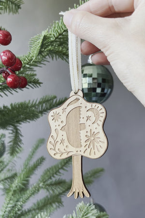 Celebrate the beauty of life and nature with our tree of life ornament. Crafted with intricate details and delicate foliage, this wooden masterpiece evokes a sense of wonder and enchantment. Its whimsical design adds a playful touch to your holiday decorations, making it a delightful addition to any festive setting.