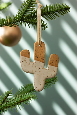 Do you love being in the quiet, expansive desert? Bring the magical desert feeling to your holiday decor with our speckled clay cactus ornament. Whether you display it to remember a special trip or to celebrate your love of cacti, you'll be trimming your tree with our beautiful take on this classic Southwestern flora.