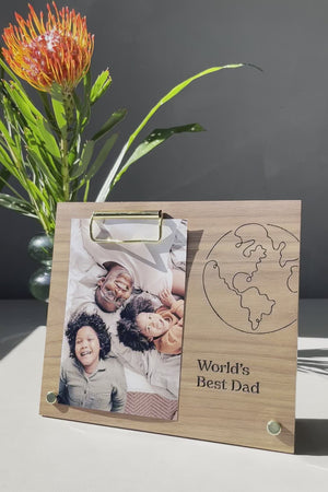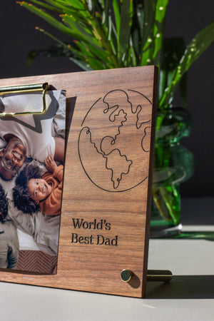 This Father’s Day, commemorate your Dad for the champion he is with the World’s Best Dad laser cut wood frame. Add a personalized message, name, or date to give him a gift just as unique as he is. Paired with your favorite photo, this gift will remind him every day that your love for him is one of a kind.